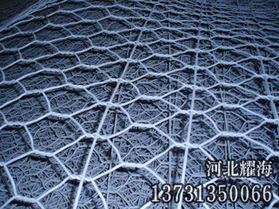 包塑的重型六角網(wǎng)是包塑絲編織的六角網(wǎng),用于制作石籠網(wǎng)網(wǎng)箱箱和直接固定在山坡以及邊溝防護(hù)水土流失、泥石流和山上石塊滾落。包塑重型六角網(wǎng)的原料鐵絲是涂敷了PVC塑料涂層的鐵絲,塑料涂層厚度大約在 1mm 左右。