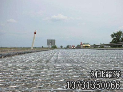 加筋重型六角網(wǎng)的拉伸強(qiáng)度高于普通網(wǎng)片,加筋絲直徑一般不小于邊絲直徑。安裝到路基上,尤其當(dāng)路基的基礎(chǔ)應(yīng)力很高的情況下,它能吸收并從根本上減弱有裂縫或交通而產(chǎn)生的張應(yīng)力縫值。