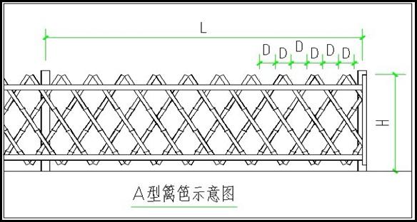 仿竹籬笆的各參數(shù)為:柱間距L:2000mm~3000mm;格柵孔距D:750mm~1000mm;高度H:900mm~1800mm;立柱:50*50mm鋅鋼方管;橫梁為:50mm或74mm寬槽鋼;格柵管:Φ19或Φ25竹節(jié)管。